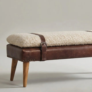 Cream Bouclé Bench with Cream Tan Leather Straps