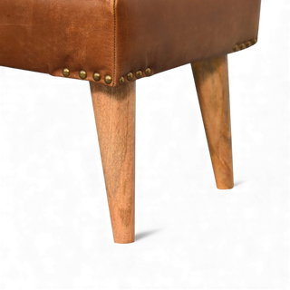 Bouclé Footstool Tan Buffalo Leather Ball Feet