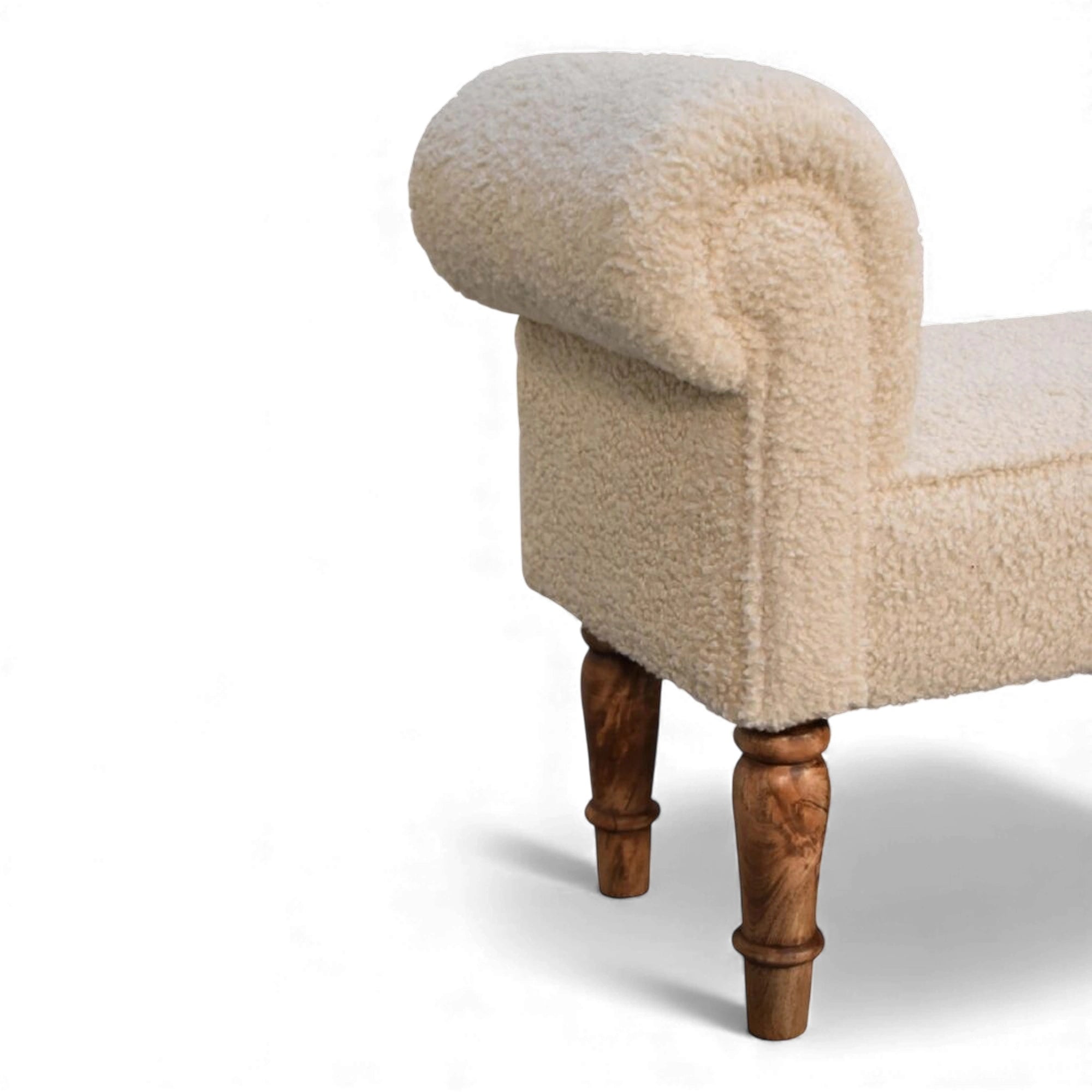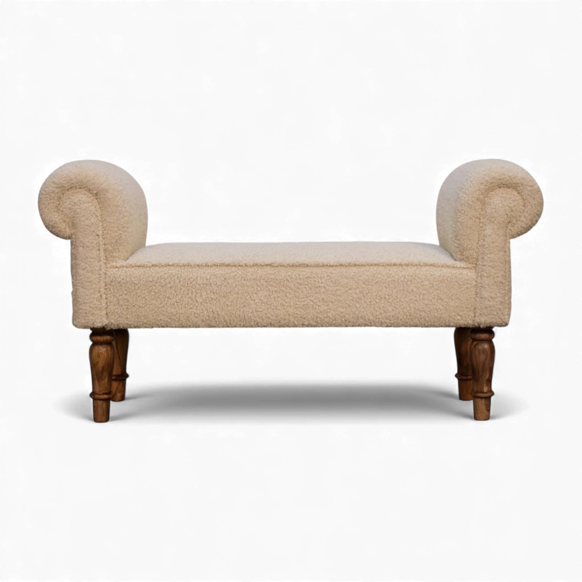 Bouclé Bench Cream Turned-Leg Classic